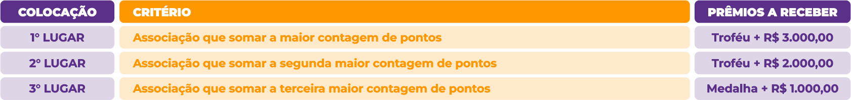 8.2.3. Serão entregues troféus, medalhas e prêmios em dinheiro que serão pagos por meio de cartões UTIL Prêmio destinados às Associações campeãs;